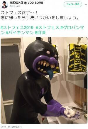 バイキンマンが石鹸で手洗い 日本橋ストリートフェスタ 後のプライベートショット公開 19年3月12日 エキサイトニュース