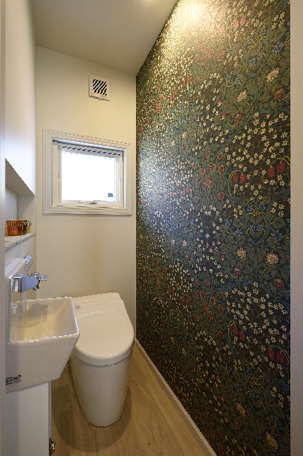 茨城県牛久市の耐震 デザインにこだわる新築とリフォームのお店 m建 えむけん ウィリアムモリス 壁紙 壁紙 インテリア トイレ レイアウト