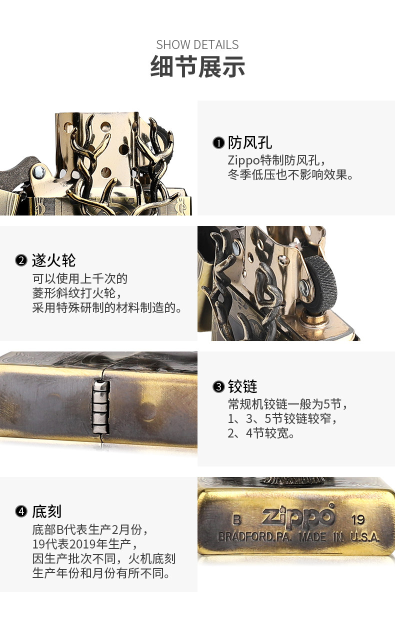美国原机进口zippo 春季新款铜盔甲一鹿有你立体浮雕16孔防风打火机 天猫价格268元礼遇价正价639元 网购值值值