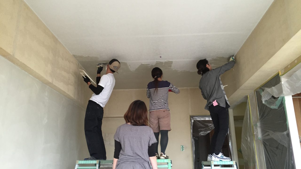 天井に漆喰や珪藻土を塗る体験練習会 漆喰 しっくい 通販 ロハスウォール